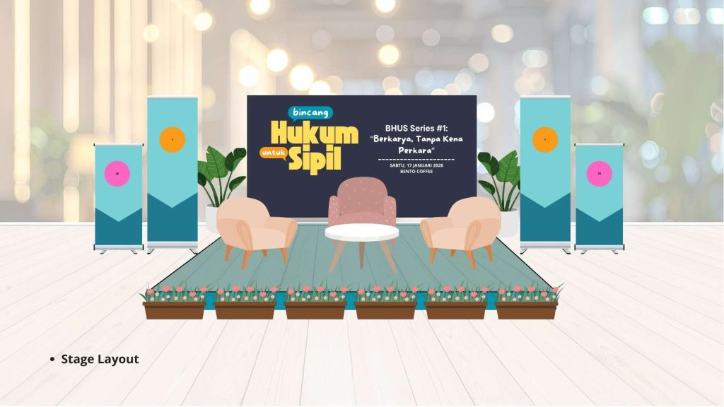 Penempatan logo pada backdrop panggung dan dua standing banner di kanan dan kiri area panggung acara